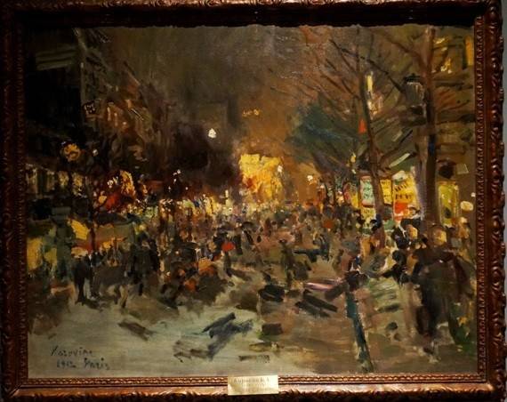 Есть ли на выставке работы, полностью отражающие суть аутентичного французского импрессионизма? Да, с признаками заимствования. Разумеется, это коровинский «Бульвар в Париже». Ночная столица, полная тайн и соблазнов, огни, силуэты. Город грехов и город искусств! Если не знать, что писал русский художник, это покажется настоящей парижской штучкой.