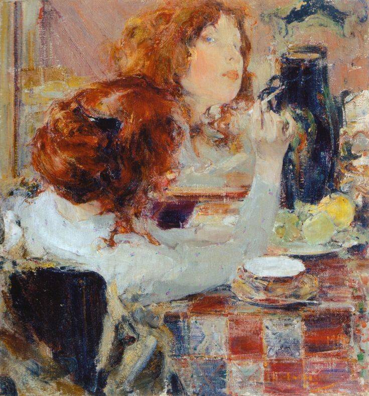 О чём же вещают нам русские художники, так или иначе причисленные к импрессионистам? Первейшая тема – дачно-усадебная жизнь. Это – чисто наше проявление, во французских вариациях этого нет в силу социокультурных причин. Благорастворение воздухов! Точка сборки – «За чайным столом» Константина Коровина, где семья отдыхает в своём тесном кругу. Самовар, приборы, уютная обстановка, дамы – в домашних нарядах, сильно отличавшихся от прогулочно-визитных. Вид с террасы – слегка утомлённая, но свежая зелень сада. Ведётся неспешный разговор. О чём? О сенокосе или о новых стихах? О московских выставках или о соседской помещице? Мы этого не знаем, но как приятно смотреть на эту картину, где люди, природа и лето находятся в удивительной гармонии.