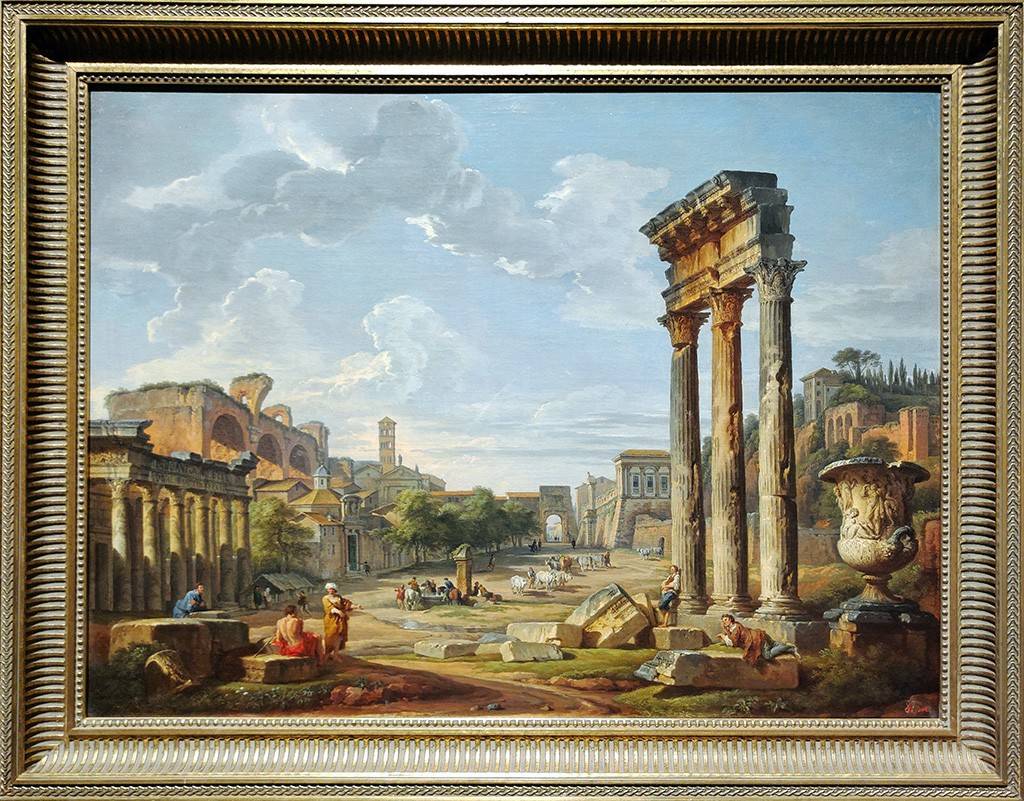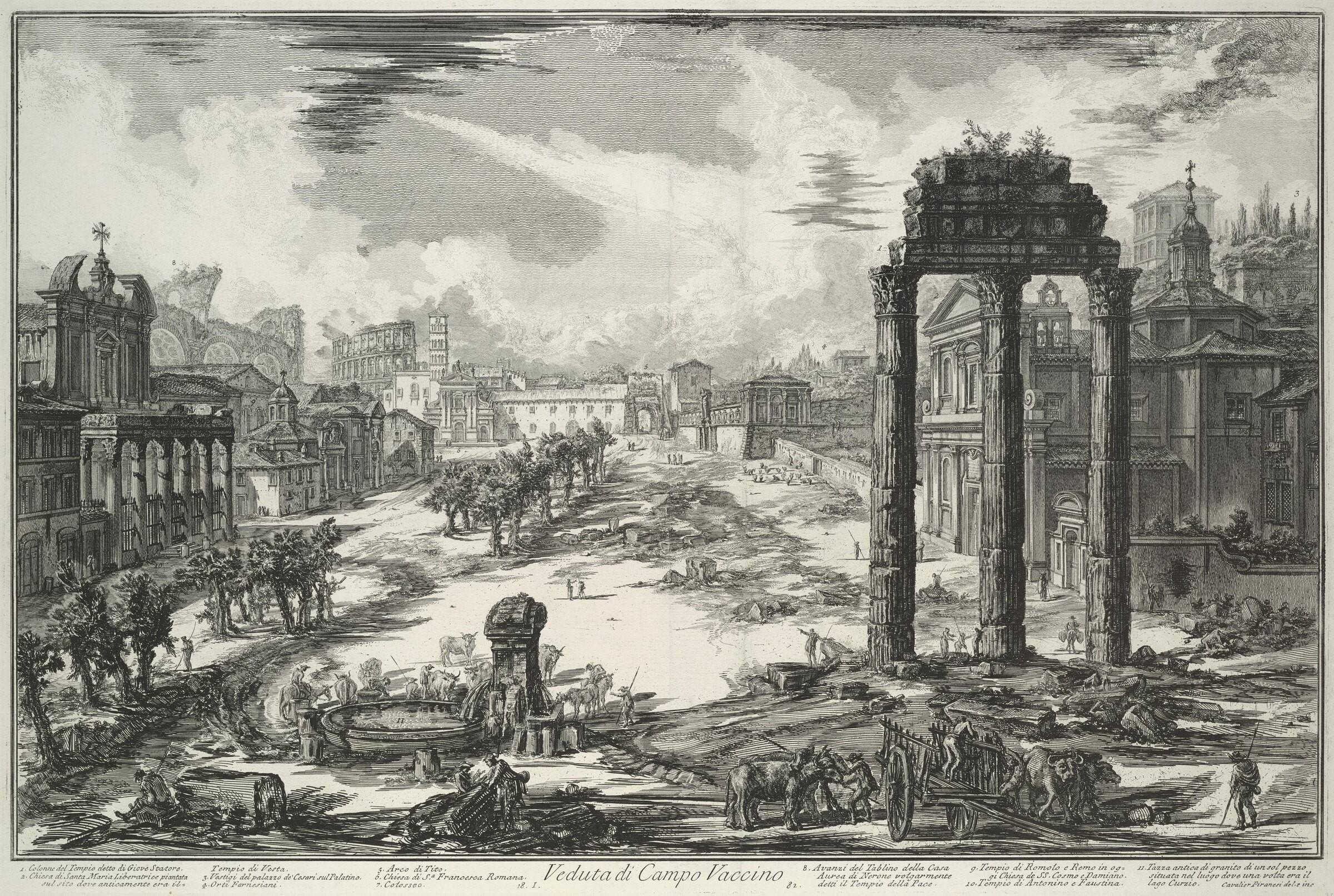 Пиранези скрупулёзно зарисовывал и описывал сохранившиеся памятники Рима, изучал топографию античного града Вечности, пытался хотя бы на бумаге сохранить память о былых свершениях. Среди экспонатов – серия Пиранези «Виды Рима» - тут и Форум, и Пьяцца делла Ротонда, и Египетский обелиск на площади Сан Джованни ин Латерано, и колонна Траяна. Всё это восторгало Пиранези – он считал, что живёт во времена деградации всего и вся, когда нет великолепия замыслов и воплощений. В какой-то мере он был прав. Италия XVIII века – это соперничавшие друг с другом мини-государства, к которым относились, как к чему-то второстепенному. Конечно, там всегда процветали искусства, но ведь на этом далеко не уедешь. Жить туризмом и художествами – это ли достойное занятие для Urbs Aeterna?!
