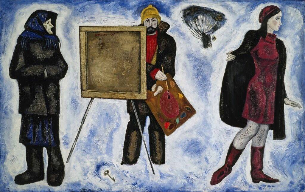 Через образы страшных вдов, ревущих коров на фоне поваленных крестов и рассекающих небо самолётов («У Белого моря», 1965), бремени отцовской шинели он приходит к болезненным образам метафизического оцепенения. Его картины «Тишина» (1972) и «Майский праздник» (1972) поистине исполнены тишины и праздности — незанятости, роковой паузы. На обеих картинах мы видим девочек, маленьких, играющих, беспечных, беспомощных, закрывших глаза, ничего не ведающих, стоящих спиной к нашей огромной стране с её трудной историей. Долы, церкви, города, памятники молчаливо вопрошают нас, а мы боимся открыть глаза, обернуться, пригреть, обжить родное, взять ответственность. Эти образы сиротства родины имеют истоком общий эскиз («Девочки», 1971), на котором встречаются обе героини. Стоя друг против друга, они не видят ничего вокруг. Они пребывают в немом забвении.