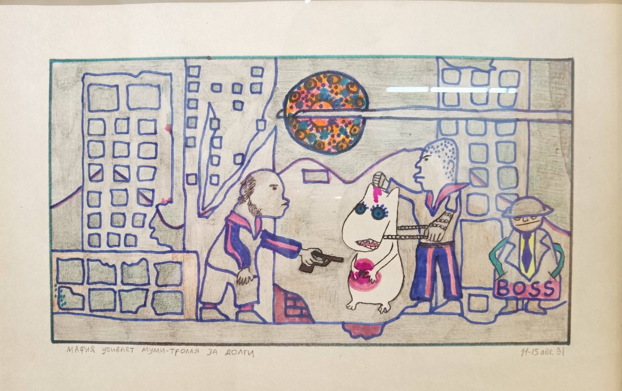 «Мафия убивает муми-тролля за долги». Убийство и десакрализация одного из символов детства — отклик на вынужденное стремительное взросление общества, которое оказалось во многом не готово к новой реальности, предлагающей на выбор «Экскурсию на кладбище» или удивительное семилетнее путешествие «в стальном гробу» под песню сверхновой звезды. Вся эта «накипь смутного времени» подробно запротоколирована автором.