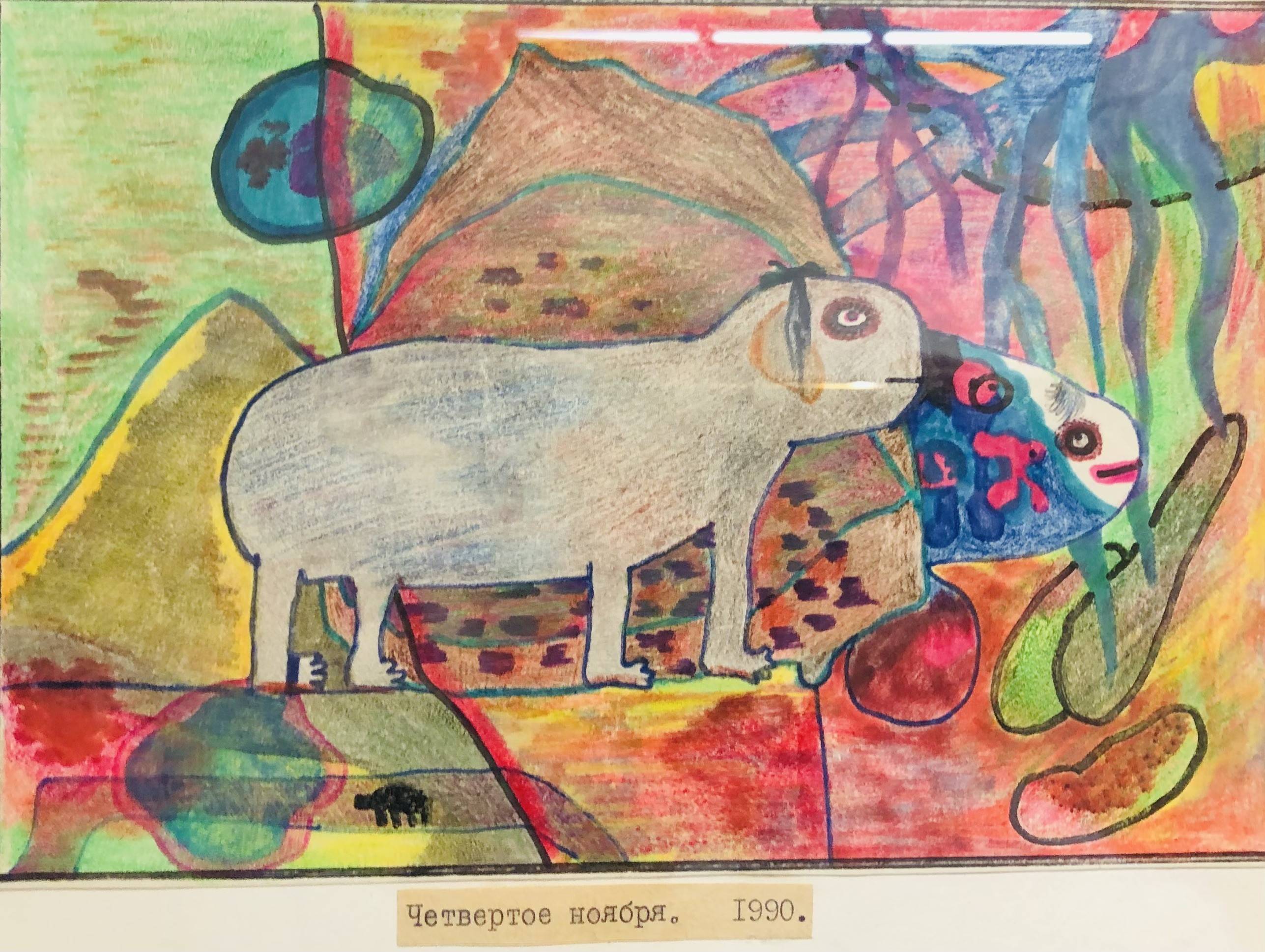 Рисунки датированы: это конец 80-х – начало 2000-х, стык эпох, смена старого мира новым, с громким развенчанием прежних идеалов, атмосферой эсхатологической вседозволенности и безумия. Усов иронично, с педантизмом изображает обложки толстых журналов «Новый мир», «Октябрь», использует для коллажа заголовок политического журнала «Новое время». Вот оно и наступило, но облегчения это не принесло. Мир стал ещё более абсурдным и гротескным, беззащитным. «Вот она перестройка».