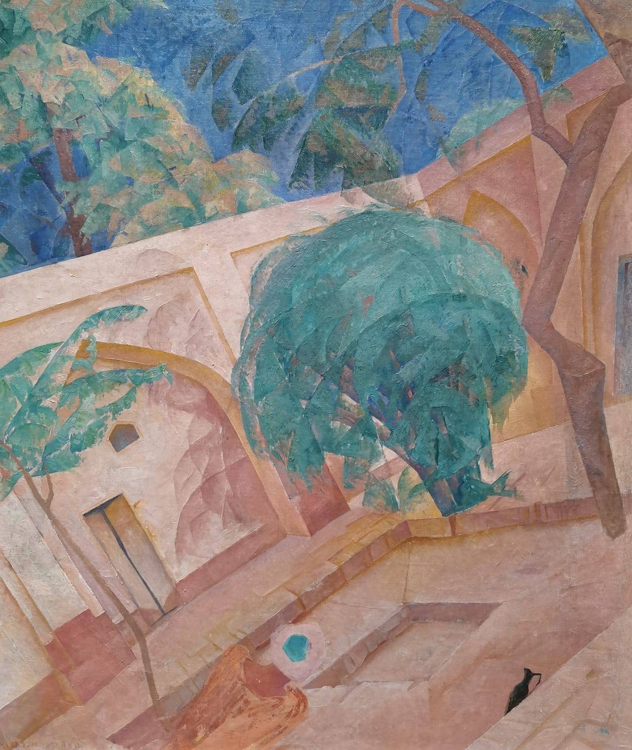 Бывал в Туркестане и Кузьма Петров-Водкин, выполнивший в Самарканде около тридцати живописных этюдов. На выставке довольно много его произведений – головы мальчиков-узбеков, пейзажи, натюрморты. Не оказался в стороне Александр Самохвалов, которого живо интересовало любое индустриальное действо – Турксиб – вот, куда устремлялись деятели искусств. Кроме того, в Туркестане - в крупных его городах – началось развитие промышленности. Впрочем, есть и романтическая зарисовка «Самаркандский дворик», сделанная Самохваловым словно бы в минуту отдыха. Восточная нега! Как же без неё?