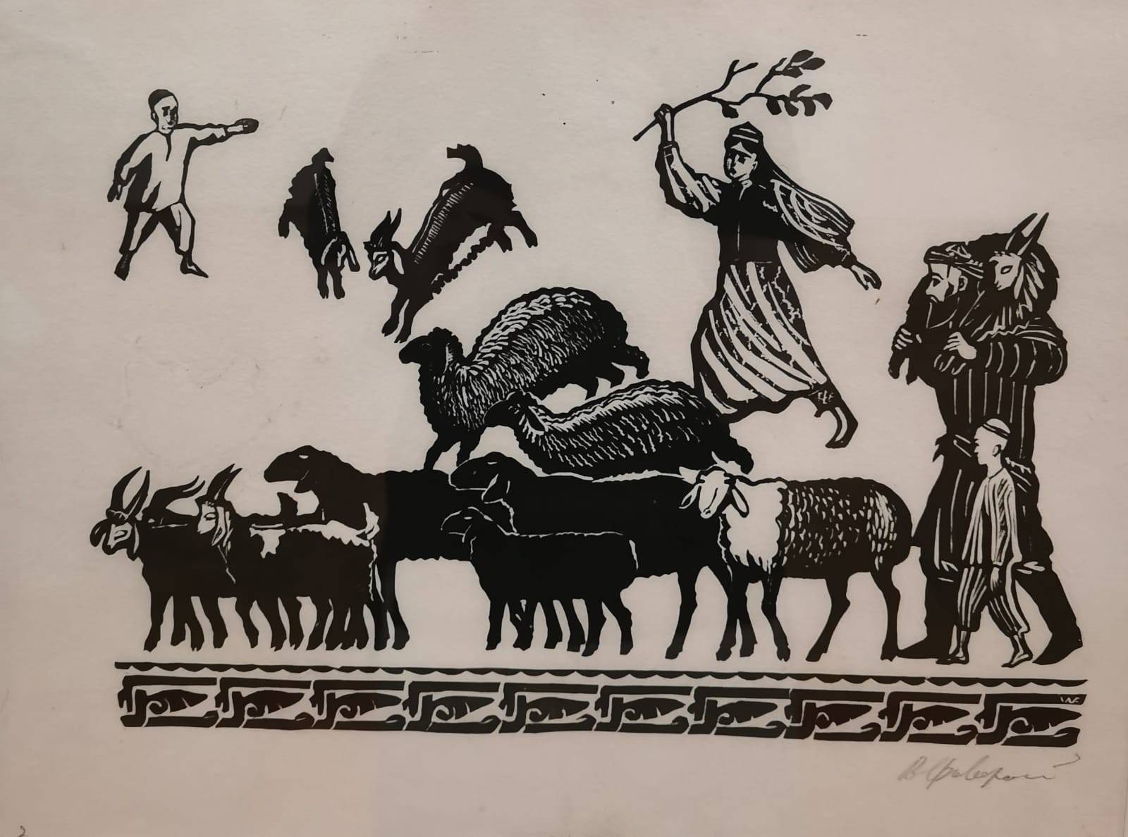 Особое внимание уделено годам войны, когда многие деятели оказались в эвакуации. Так, целый раздел посвящён линогравюрам Владимира Фаворского. Впоследствии он вспоминал: «Там, в Самарканде, климат не позволял делать деревянные гравюры. Они расклеивались. И поэтому я перешел на линолеум, первый раз, собственно, за всю жизнь. Самарканд с его уличками и окрестностями доставлял мне картины жизни узбеков. Я их рисовал. Там характерно, что никакой тени нет почти совсем, потому что тень прячется под человеком. Солнце над ним. И поэтому, собственно, тема тени совсем как будто в солнечной стране не была затронута. В искусстве очень важно удивиться, увидеть что-то как бы впервые...» Фаворский изображал всё и всех – женщин в национальных костюмах, погонщиков скота, водоносов, торговцев. Этот мир не может не завораживать!