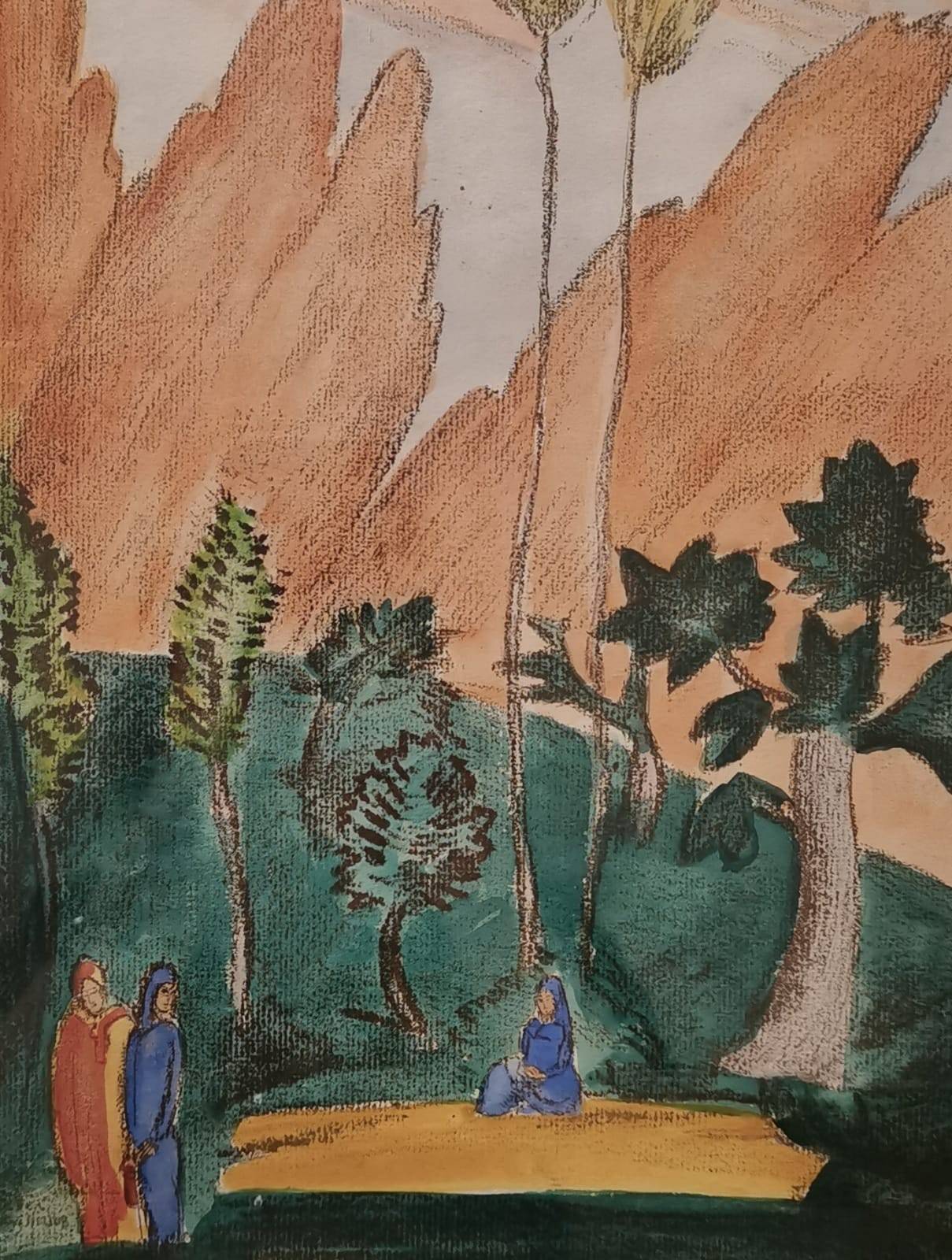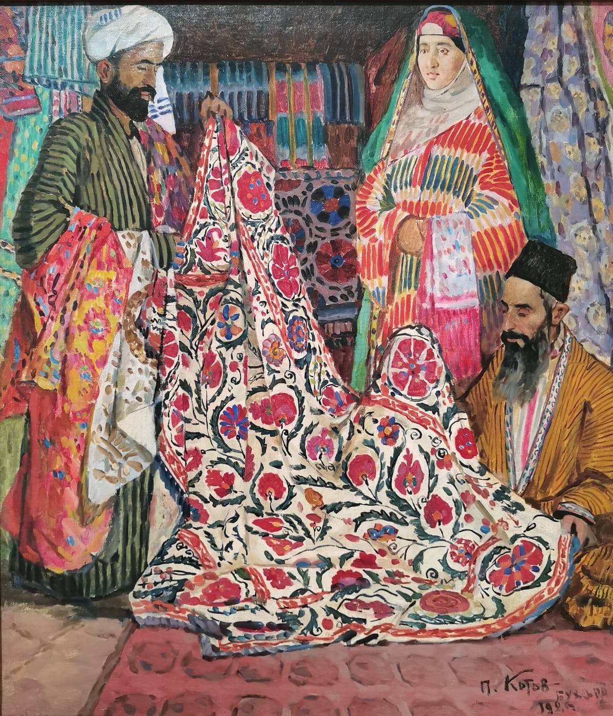 А вот – картины Роберта Фалька «Золотой пустырь» и «Отдых под деревьями». Мимолётность настроения, импрессионистская изюминка, зыбкость жаркого марева – таким увидел Фальк эти места. Прекрасны зарисовки Сергея Герасимова, постаравшегося запечатлеть Самарканд во всей его красе. Зорким глазом он помечал всё - и насыщенные краски одежд, и древнюю архитектуру.