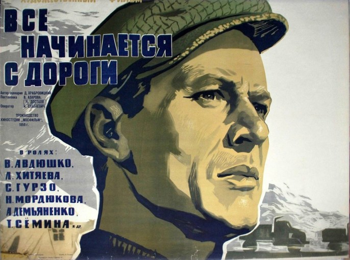 Фильм с простеньким названием «Всё начинается с дороги» (1959) не так уж прост. Вообще, тут всё начинается не дорогой, а митингом, который затем перетекает в домашний скандал. Ага. Итак, на митинге выступает главный герой повествования – Степан Боков (Виктор Авдюшко). Он говорит (точнее – кричит) о том, что на пустом месте мы отстроили чудо-город и теперь надо двигаться дальше.