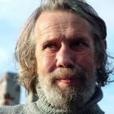 Завернувшись в видавшее виды пальто.