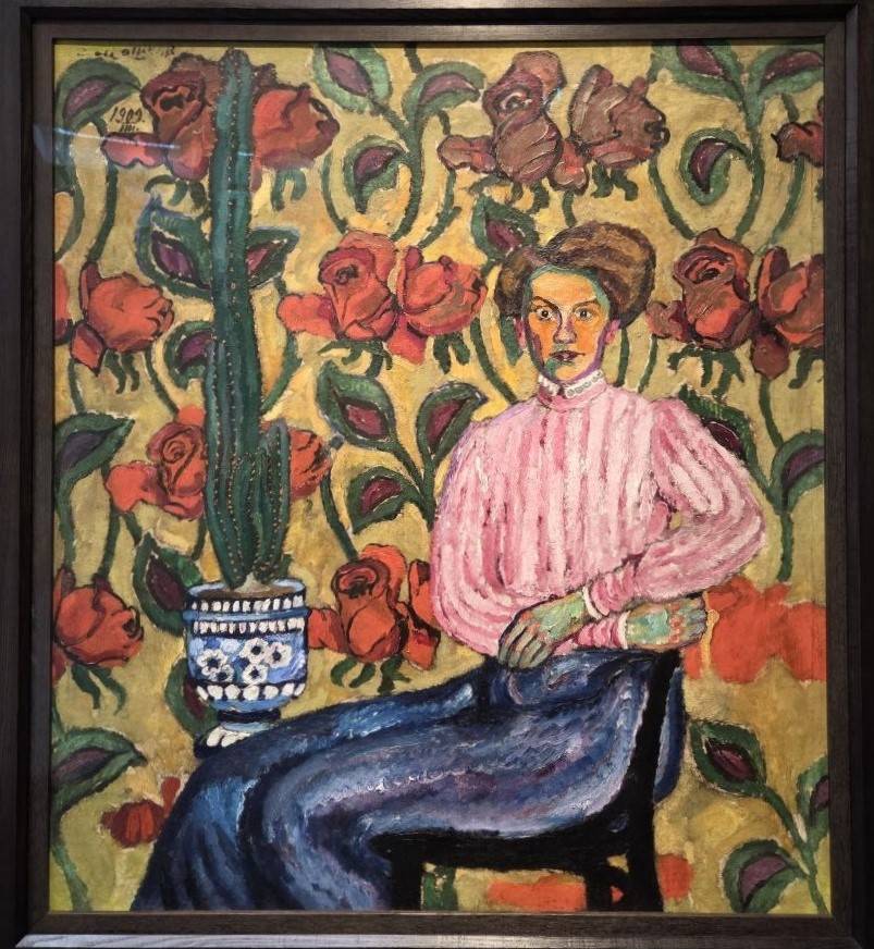 Кто полностью отдавался течениям, так это Илья Машков – талантливейший рубаха-парень. Александр Бенуа констатировал: «Машков - образец живой творческой силы, темперамента, непосредственности». Портрет Варвары Виноградовой написан свежо и мощно. С одной стороны, это – репрезентативный портрет городской львицы, а с другой – лубок и шутка. Не менее ошеломляющ портрет Евгении Киркальди – купеческой дочери, занимавшейся в студии Машкова. Рыжая дама в синей накидке – сочность и колористическое безумство. Машков удивлял и – раздражал своими сине-зелёными натурщицами, которых также мы наблюдаем в экспозиции. Главное, что он никогда не изменял хорошему вкусу – в сумасбродстве Машкова прослеживается чёткость отменного рисовальщика.