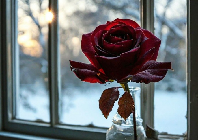 Она входила в калитку, не замечая бьющего в лицо колкого снега. Руки прижимали цветок к губам.