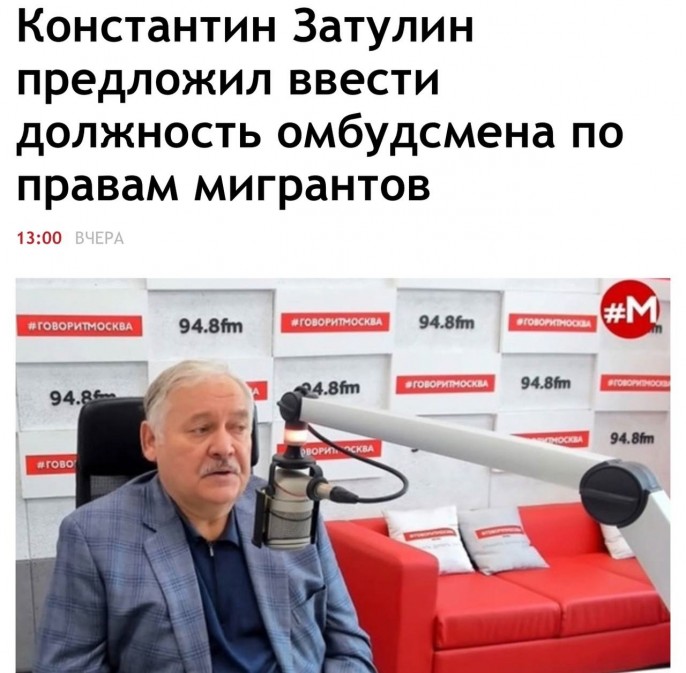 ТГ-канал "Многонационал": "Так-то в России уже есть уполномоченный по правам человека, но, видимо по мнению Затулина, мигранты под эту категорию не попадают. Ладно, не будем придираться и тратить время на споры. Готовы поддержать, но при одном условии. Редакция нашего замечательного канала «Многонационал» укомплектует штат аппарата уполномоченного по правам мигрантов. А почему нет? Мы много лет работаем в области дружбы народов и имеем просто кристальную репутацию и авторитет среди сотен тысяч наших подписчиков всех национальностей. Пускай иностранные специалисты приходят к нам с челобитными, а мы их будем рассматривать. Т.к. уполномоченный по правам человека уже есть и делать отдельного уполномоченного по правам мигрантов как-то не очень звучит, предлагаем назвать должность, например, «Царь мигрантов». Будем править железной рукой, но справедливо. Всё, как они любят. Понятное дело, что потребуется немаленький бюджет, нужны будут представительства во всех крупных городах, свои медиаресурсы, служба безопасности, возможно, небольшой банк. Всё решаемо. Можно даже всё организовать без бюджетных затрат, полностью на самоокупаемости. Об этом напишем чуть позже, идеи уже есть. Проблема в том, что Затулин на эту должность хочет кого-то вроде себя или условного Коженова (президент Федерации мигрантов России Вадим Коженов - Прим.)".