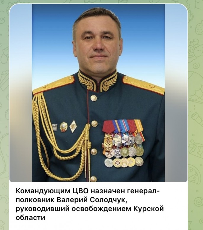 Новым командующим войсками Центрального военного округа (ЦВО) стал генерал-полковник Валерий Николаевич Солодчук, успешно руководивший освобождением курского приграничья.