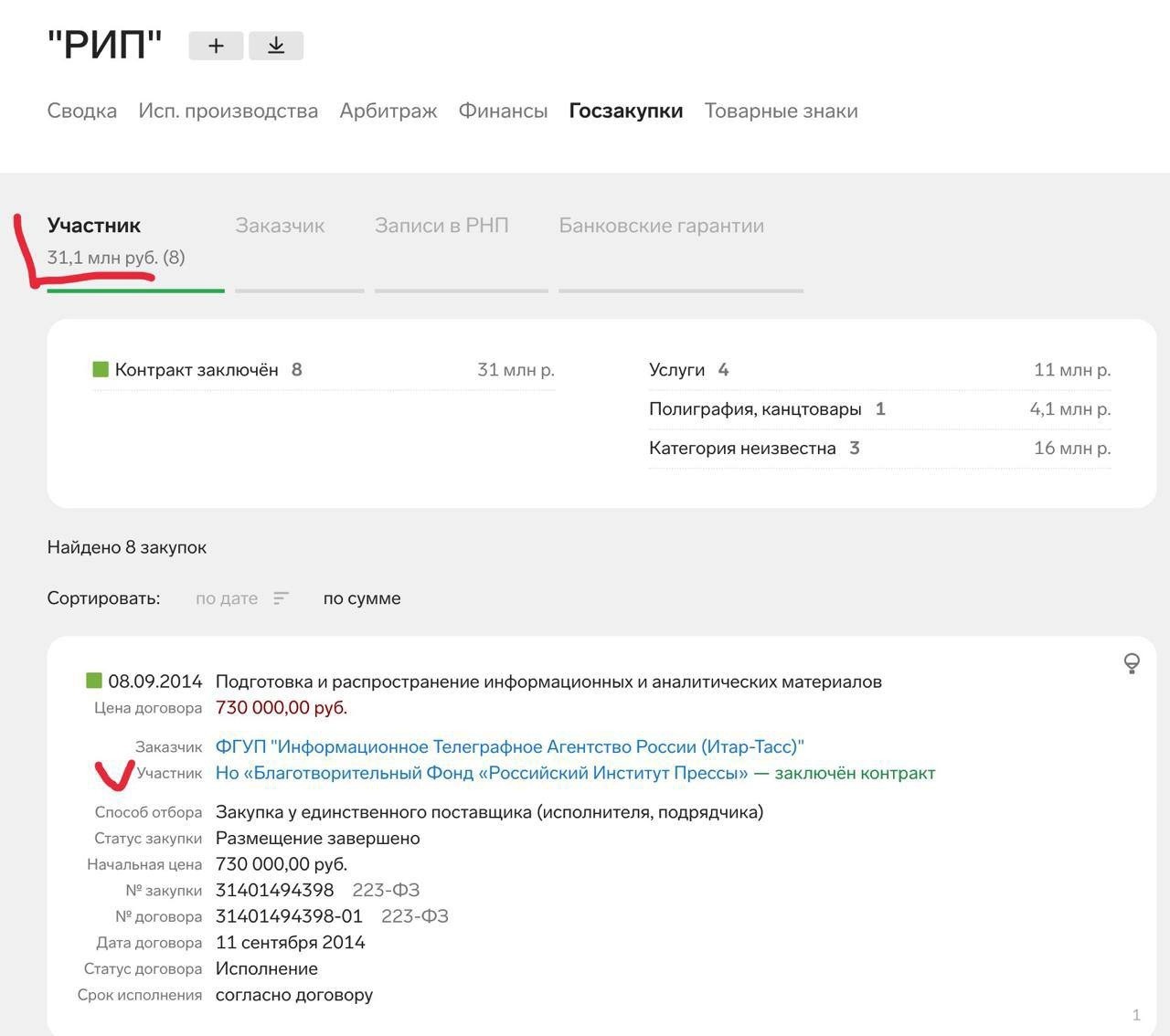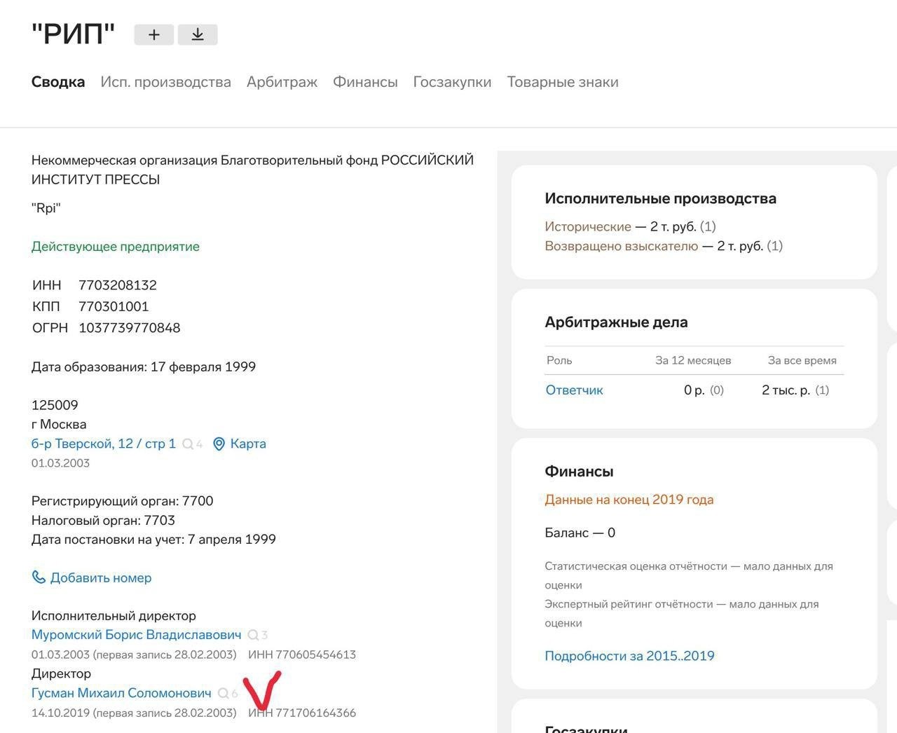 Интересное дополнение. Оказывается, Михаил Соломонович не только воспеванием Ильхама Гейдаровича занимался, в своё время он ещё и по части любопытных госзакупок отличился. Заместитель редактора отдела международной политики "КП" Эдвард Чесноков пишет: "Некоммерческая организация «РОССИЙСКИЙ ИНСТИТУТ ПРЕССЫ» (директор — уволенный М. С. Гусман) выиграла на ₽31 млн госзакупки у ТАСС (зам. гендиректора — уволенный М. С. Гусман). Ни у каких других организаций это АНО госзакупки не выигрывало. Чудеса!"