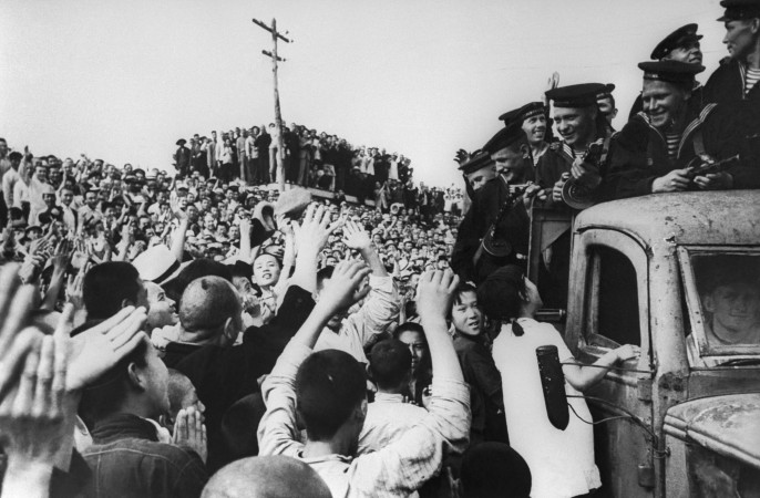 Фотохроника ТАСС: Население Харбина приветствует советских воинов.