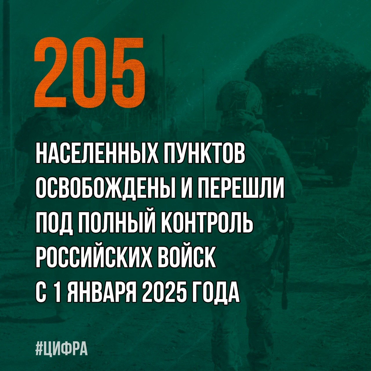 ✅ При этом за указанный период в зоне проведения специальной военной операции освобождены и перешли под полный контроль Вооружённых Сил РФ 205 населённых пунктов".
