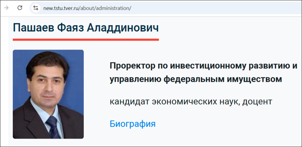 Проректор по инвестиционному развитию и управлению федеральным имуществом Тверского государственного технического университета, кандидат экономических наук, председатель Совета Федеральной культурной автономии Азербайджанцев России ("АзерРос"). Пашаев — член Общественного совета при УМВД по Тверской области, с 2002 года возглавляет региональный "Конгресс Азербайджанцев". Что интересно, Фаяз Пашаев оказался одним из немногих статусных азербайджанцев, кто фактически открыто поддержал сторону России в конфликте с Азербайджаном. Он заявил, что "борьба с оргпреступностью (в контексте разгрома этнической ОПГ в Екатеринбурге) является гарантом стабильности и единства в нашем обществе". И ещё опроверг гулявшую в этнических кругах Твери информацию о том, что якобы многие крупные бизнесмены сбежали из России, опасаясь проблем.