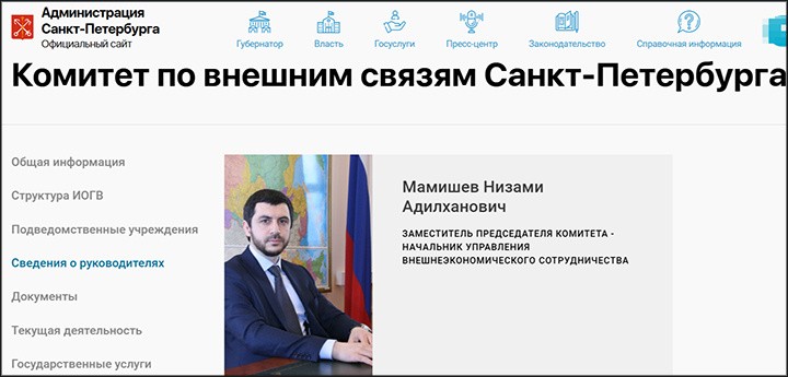 Он зампред Комитета по внешним связям Санкт-Петербурге и одновременно начальник Управления внешнеэкономического сотрудничества. А ещё — племянник Вагифа Мамишева. В 2010-с окончил платное отделение юрфака СПбГУ, спустя два года защитил магистерскую диссертацию по теме "Привлечение в качестве обвиняемого". Уже в 2013-м получил должность специалиста 1-й категории в аппарате тогдашнего губернатора Георгия Полтавченко и в том же году был назначен замглавы администрации Красносельского района, которым проработал 5 лет. Далее — на два года он занял кресло зампреда Комитета по молодёжной политике и взаимодействию с общественными организациями. А в марте 2020 года его перевели в Комитет по внешним связям Санкт-Петербурга, известный тем, что его в своё время возглавлял сам Владимир Путин. Низами Мамишев же не только занял кабинет заместителя в этой структуре, которая имеет весьма большое значение в экономике Северной столицы, но и возглавил ключевое её управление — по внешнеэкономическому сотрудничеству. К слову, молодой управленец известен своей любовью к боям без правил (есть в городе такой клуб Mamishev Fight Team) и роскошным автомобилям. В разнок время в его автопарке были, например, Rolls-Roys Phantom VII за 500 тыс. евро, раритетный Mercedes 220a 1955 г.в., Porche Cayenne и Hummer H2.