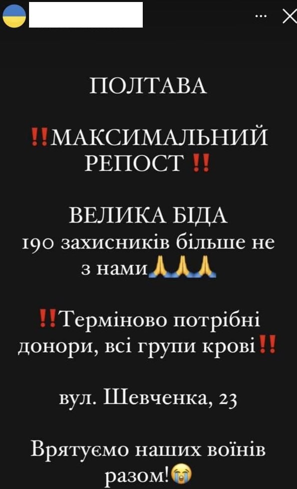 ТГ-канал "Военный обозреватель": "Шведские инструкторы, которые были ликвидированы во время ракетных ударов по центру подготовки связистов в Полтаве, предположительно, обучали экипаж для самолёта дальнего радиолокационного обнаружения и целеуказания ASC 890, который королевство планирует передать Киеву". "Голос Мордора": "В Полтаве призывают детей сдавать кровь, чтобы спасти раненых шведских друзей. Сами медики в ахрене и пишут такое в соцсетях. Да ладно вам стесняться, давайте уже как в Саласпилсе, выкачивайте кровь для белых господ из детей насильно".