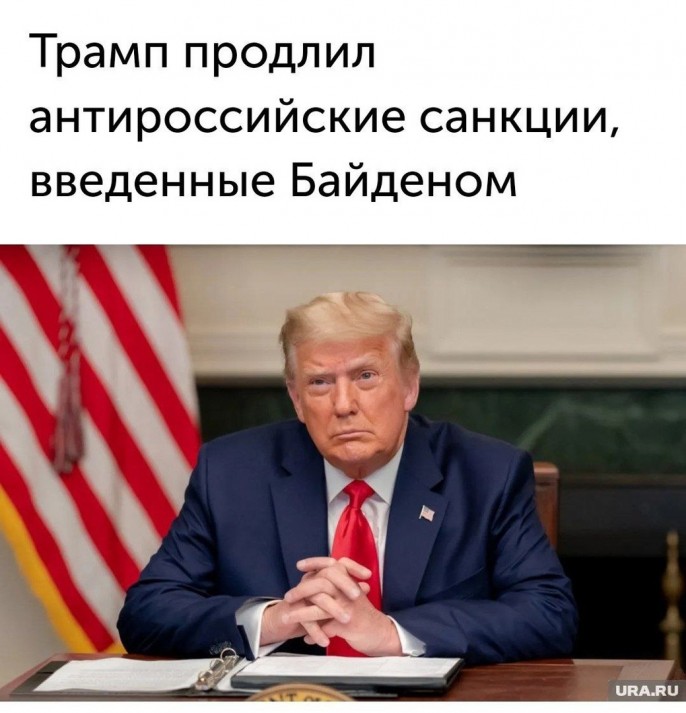 Дональд Трамп принял решение продлить на год режим чрезвычайной ситуации, то бишь пакет антироссийских санкций, введённый его предшественником Джо Байденом в связи с "вредоносной деятельностью" российских властей. Это следует из уведомления в Федеральном реестре США.