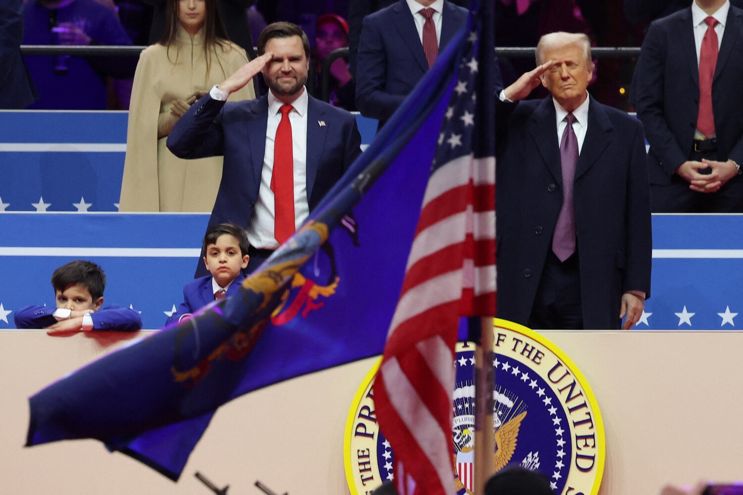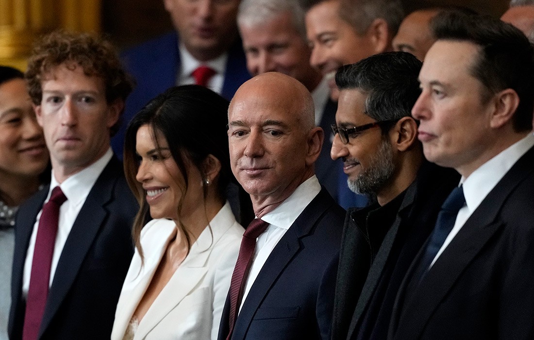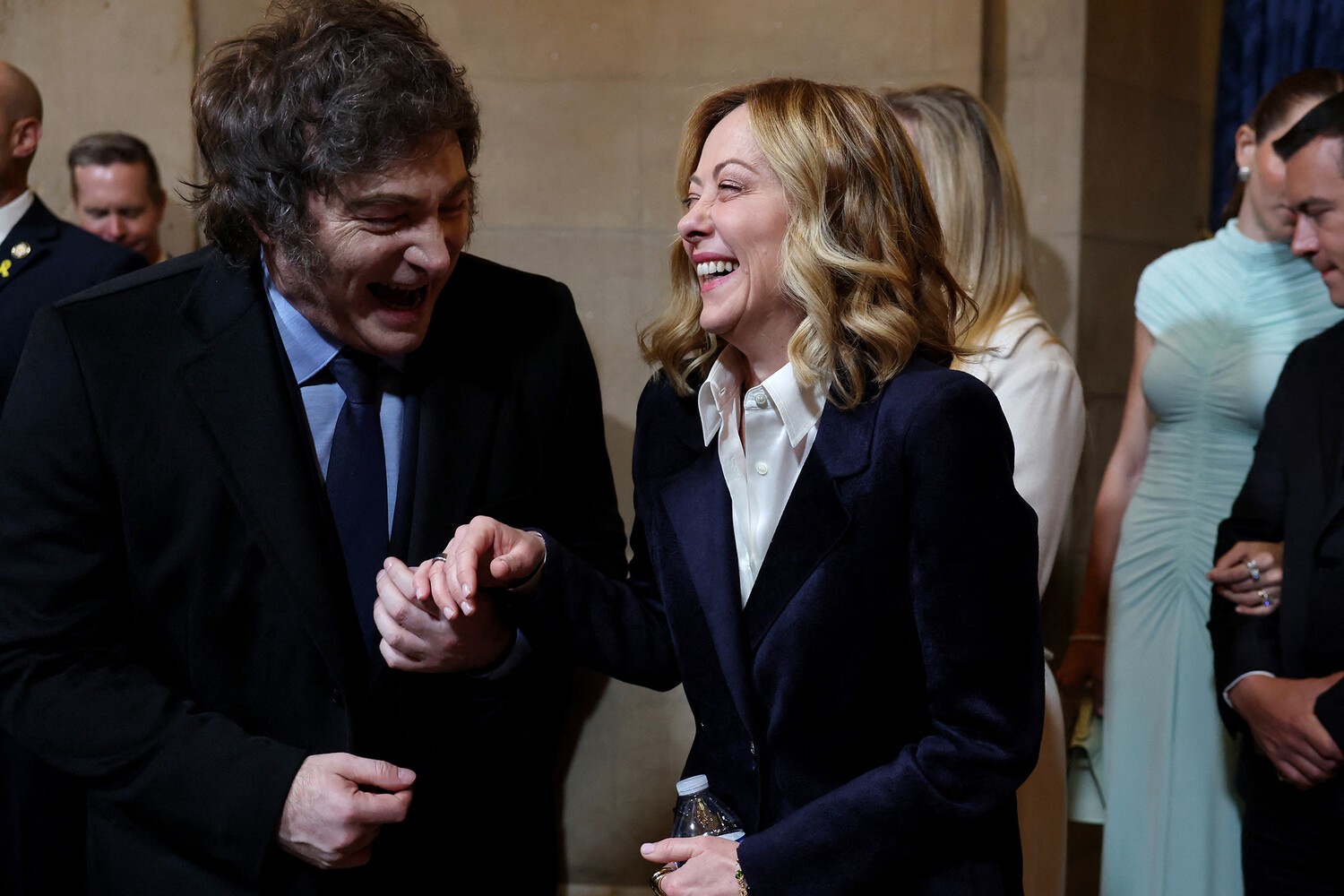 В Ротонде среди нескольких сотен гостей можно было лицезреть Байдена с женой, Барака Обаму без жены, Билла и Хиллари Клинтонов, Камалу Харрис и её мужа Дага Эмхоффа. Номер один списка Forbes присутствовал, разумеется. То бишь Илон Маск. Председатель совета директоров признанной экстремистской и запрещённой в РФ компании Meta Марк Цукерберг, председатель совета директоров Amazon Джефф Безос, гендиректор Google Сундар Пичаи, гендиректор Apple Тим Кук, гендиректор TikTok Шоу Цзы Чу, гендиректор OpenAI Сэм Альтман, гендиректор Uber Дара Хосровшахи, основатель News Corporation Руперт Мёрдок. Политобозреватель Такер Карлсон, телеведущая Мегин Келли, ведущий популярного подкаста Джо Роган. Президент FIFA Джанни Инфантино, президент Ultimate Fighting Championship Дэйна Уайт, боксёр Майк Тайсон, ирландский боец смешанных единоборств Конор Макгрегор, канадские хоккеисты Уэйн Гретцки и Эвандер Кейн, автогонщица Даника Патрик. Оперный тенор Кристофер Маччио, певица в стиле кантри Кэрри Андервуд, кантри-музыкант Ли Гринвуд, вокалист содомитской диско-группы Village People Виктор Уиллис, певец в стиле регги Джастин Куилес, негры-рэперы Фивио Форин, Кодак Блэк и Род Вейв, пуэрториканский рэпер Ануэль АА. Премьер-министр Италии Джорджа Мелони, президент Аргентины Хавьер Милей, президент Эквадора Даниэль Нобоа, президент Сальвадора Найиб Букеле, экс-премьеры Великобритании Борис Джонсон и Лиз Трасс, экс-премьер Польши Матеуш Моравецкий, экс-президент Грузии Саломе Зурабишвили, беглый венесуэльский смутьян Эдмундо Гонсалес, лидер французской партии "Реконкиста" Эрик Земмур, лидер французской партии "Идентичность и Свобода" Марион Марешаль, лидер британской партии "Реформировать Соединённое Королевство" Найджел Фараж, лидер испанской партии "Голос" Сантьяго Абаскаль, лидер бельгийской партии "Фламандский интерес" Том Ван Грикен, сопредседатель партии "Альтернатива для Германии" Тино Хрупалла и др. Китайскую Народную Республику представлял заместитель председателя КНР, член т.н. "шанхайской клики" Хань Чжэн, который чуть ранее в Вашингтоне провёл переговоры с Илоном Маском и Джей Ди Вэнсом, подчеркнув, что "несмотря на существование разногласий и трений, у двух стран есть широкий спектр общих интересов и огромное пространство для сотрудничества". От Индии появился министр иностранных дел Субраманьям Джайшанкар. Просроченного киевского наркофюрера на мероприятие не пустили, хотя он трижды умолял позволить ему присутствовать. Председателя Еврокомиссии, гинекологиню Урсулу фон дер Ляйен не приглашали.