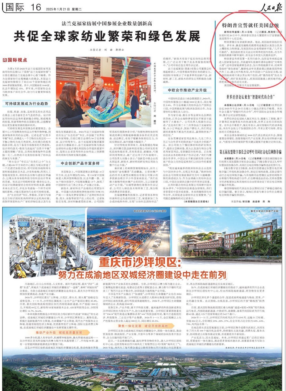 Китайская пресса, например, реагирует иначе - одна из крупнейших газет в мире и самая влиятельная в КНР (официальное печатное издание ЦК КПК) "Жэньминь жибао", осветила присягу Трампа в качестве президента США в короткой заметке на 16-й странице.