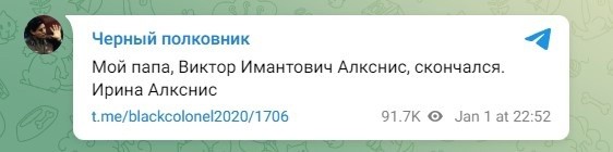 "В новогоднюю ночь скончался Виктор Алкснис, последние двое суток находившийся в коме. Вероятно, долгие годы борьбы с раком способствовали его беспросветному настроению последних лет («всё плохо, мы все пропали» — таков лейтмотив его публицистики). Но в истории он останется не поэтому. Он останется как эталон честного человека, офицера, государственно и стратегически мыслящего деятеля, который не мог вписаться ни в какие узкие партии. На таких военных, как Алкснис, наша страна держится столетиями. Когда все вокруг предавали и продавали, Алкснис неизменно оказывался честным и верным. Он не дожил немного до 75 лет и стал первой серьёзной потерей 2025 года. Почтим же его память", - написал историк Максим Медоваров. Алкснис всегда оставался "очень принципиальным человеком, с ним можно было не соглашаться, но в его искренности нельзя было сомневаться", заявил NEWS.ru первый заместитель председателя Комитета Госдумы РФ по делам СНГ Константин Затулин.