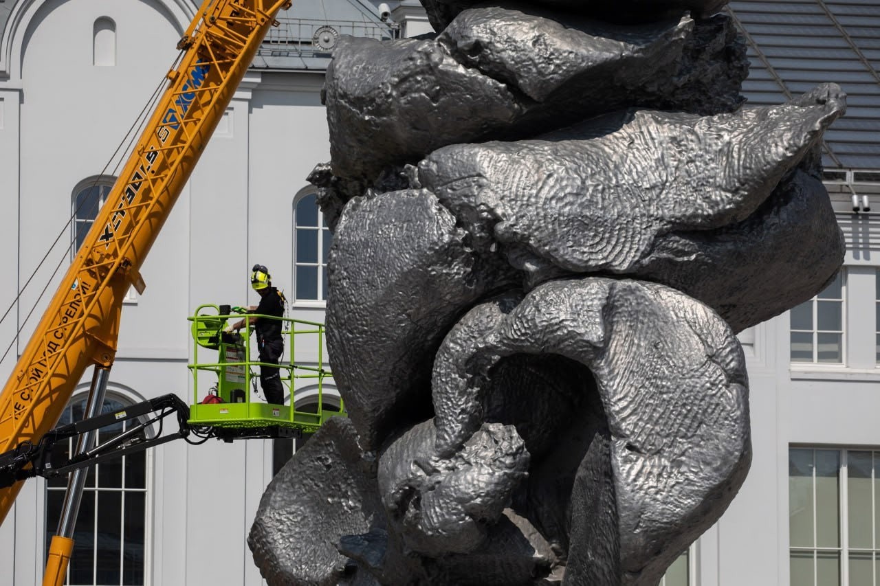 12-метровая композиция швейцарско-американского художника Урса Фишера появилась напротив главного входа в Дом культуры "ГЭС-2" в районе Якиманка 16 августа 2021 года.