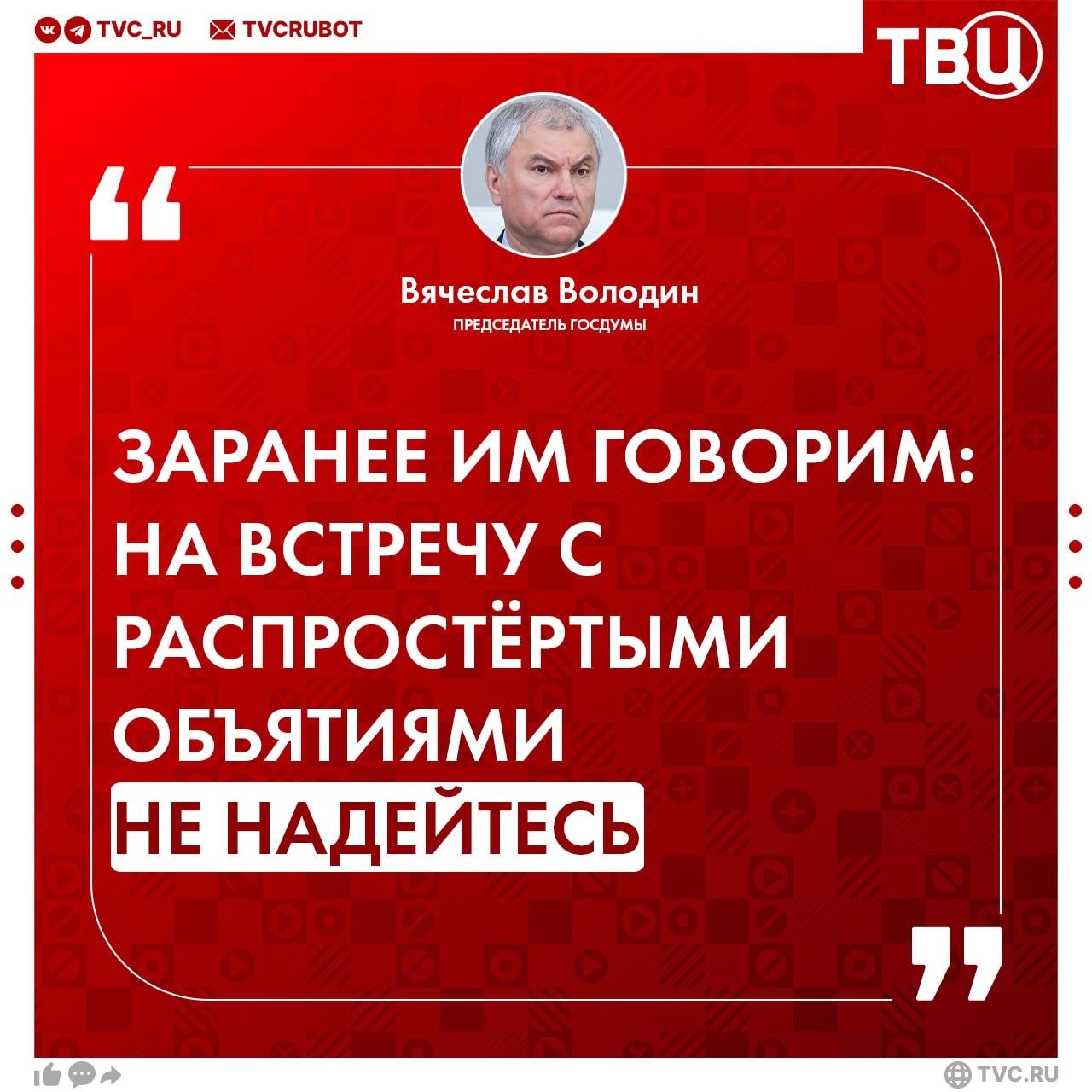 Релокантам здесь не место. Об этом в Max и Telegram пишет Вячеслав Володин, председатель Государственной Думы, член Совета Безопасности России и Государственного Совета РФ, член Совета при Президенте РФ по стратегическому развитию и национальным проектам, председатель Парламентского собрания Союза России и Белоруссии, председатель Парламентской ассамблеи ОДКБ, заслуженный юрист РФ.