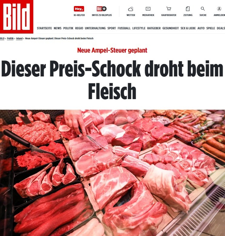 В январе министр продовольствия и сельского хозяйства ФРГ Джем Оздемир призвал сделать "решительный шаг" и предложил ввести "налог на благополучие животных" (налог на мясо). Мол, в таком случае "наши фермеры смогут лучше защищать животных, климат и природу — как того требуют все".
