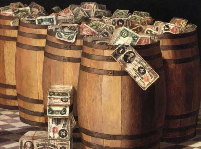Впрочем, вру, привязка рубля есть — привязка к доллару согласно правилам "вашингтонского консенсуса" и требованиям МВФ, чтобы объём национальной валюты, находящейся в обращении, не превышал объёма золотовалютных резервов Центробанка — в эквиваленте по обменному курсу. И то, что доллары — пустышка уже на 95%, что ФРС США, осуществляя "программы количественного смягчения", попросту печатает фальшивые деньги, которые здесь ЦБ считает по надежности равными золоту и даже выше, — никого не волнует.
