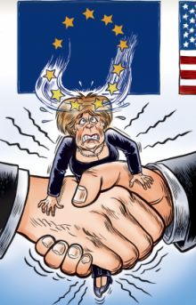 Это констатация нормы. Ещё было сквозь зубы сказано немцам, что «пусть сами решают». Это не значит, что США не будут оказывать давление на ФРГ — это как раз в рамках бизнес-интересов Америки, которые Трамп очень чётко преследует, в том числе нарушая все сложившиеся за последние десятилетия традиции, формы и нормы. Поэтому здесь можно ожидать всякого, но уже в отношении, грубо говоря, торга с Германией. В этом смысле тарифные нормы являются элементом торга.