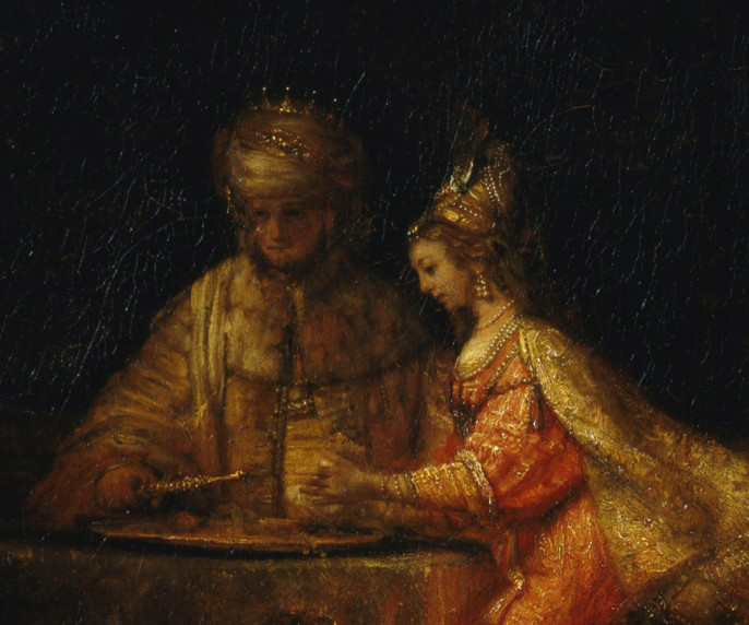 Иллюстрация: Рембрандт, «Артаксеркс, Аман и Эсфирь».