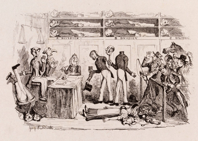 Иллюстрация Джорджа Крукшанка к "Мадфогским запискам" Чарлза Диккенса.