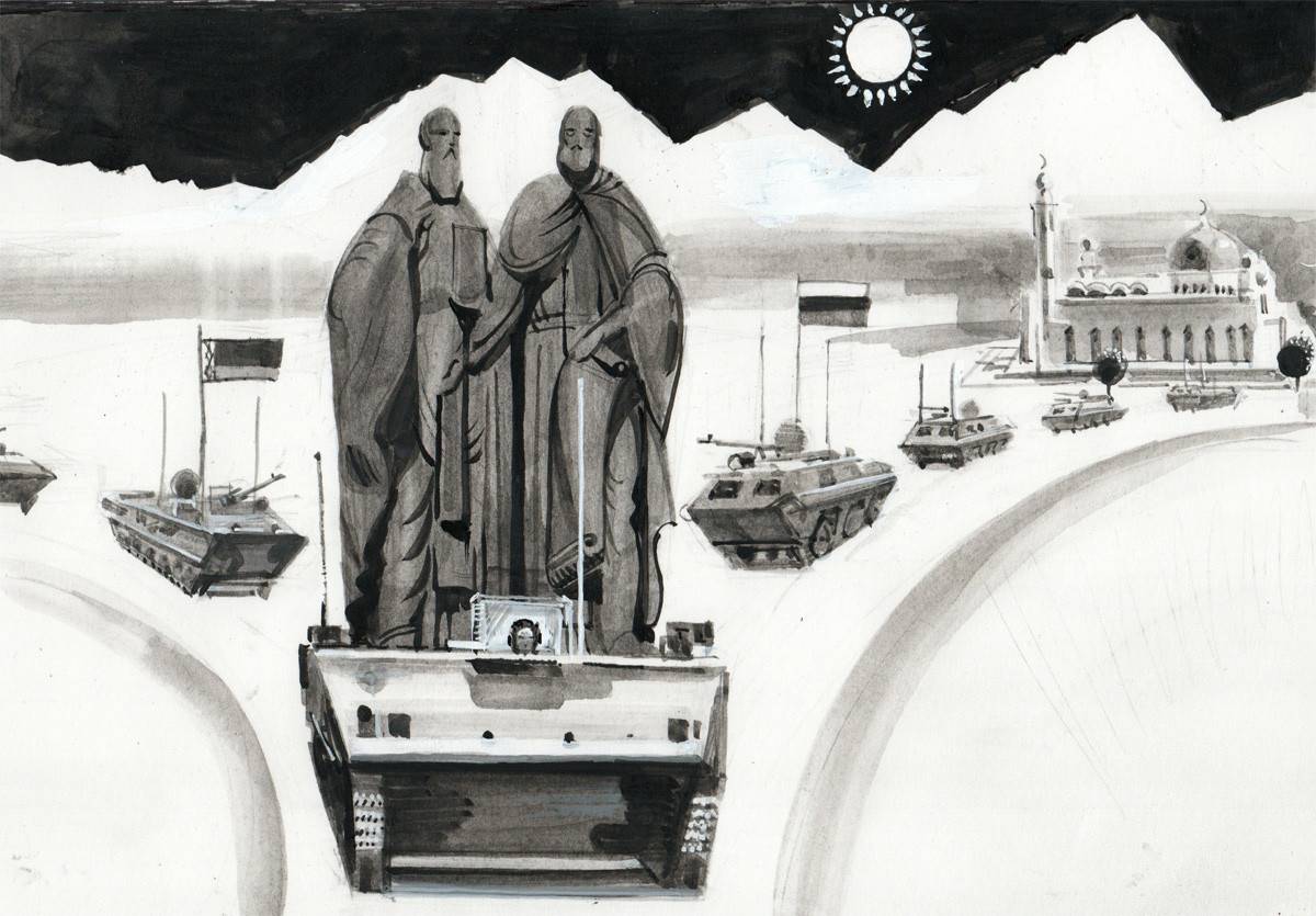 Мы изложили идеологию русского оружия — будь то меч Александра Невского или танк Т-90. Того оружия, которое защищает не просто наше пространство, наши очаги и чертоги, но вековечную русскую мечту о праведном мире, о райских садах, о божественных смыслах, о чертежах, по которым русские строят ковчег своей государственности.