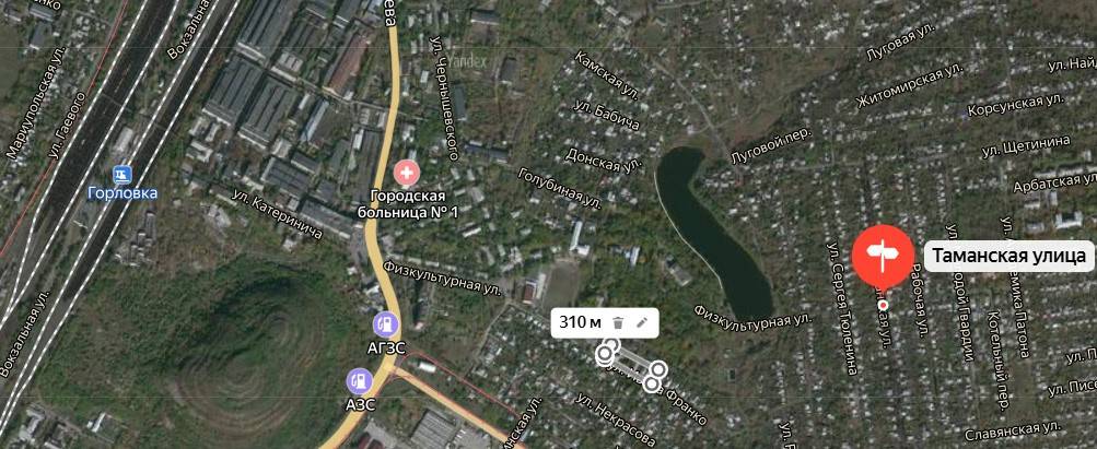 Нынче я от престарелой, почти слепой мамы долго не мог добиться, где именно этот наш дом находился, хотя уже несколько последних лет пытался это сделать. А сегодня произошло чудо, она назвала мне улицу (Таманская), на которой жила моя тётя, описала окружающий пейзаж, который мы наблюдали по дороге с остановки. Я быстренько всё за-яндекс-картил и легко нашёл место нашей семейной Стены плача. Я даже вспомнил этот парк и этот ставок - запруду на речке Корсунь. Меня маленького в нём пьяный муж двоюродной сестры чуть-чуть не утопил, уронив с плеч под воду. Вспомнил шум водопада на плотине. Те воспоминания смутны и размыты, но они всё же сохранились. И я, с маминой помощью, нашёл таки место, где стоял наш дом с погрешностью 50 или 75 метров. Место отмечено прямоугольником правее техникума на улице Ивана Франко.