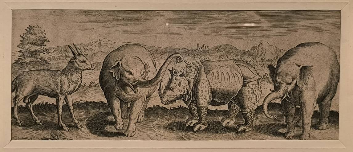 Чуть меньший трепет возбуждали слоны, хотя бы потому, что были известны в Европе и упоминались в бестиариях – это животное считалось знаком чистоты и стыдливости. Перед нами – образцы ренессансного творчества – «Слон и африканская женщина с детьми» (1525) неизвестного мастера, гравюра по композиции Андреа Мантеньи. «Слоны Из серии Триумфы Цезаря» (конец XV-начало XVI вв.), битвы слонов и битвы на слонах. Где-то животные показаны близко к своей физиологической норме, а иной раз слоны предстают, как некие сказочные монстры, вообще не живущие на нашей планете. Рисунок Абрахама де Брейна и Маркуса Герартса изображает слоников в компании газели и носорога, причём носорог буквально списан у Альбрехта Дюрера.