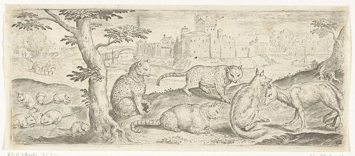 В экспозиции представлены работы Абрахама де Брейна и Маркуса Герартса – фламандских живописцев, гравёров и орнаменталистов второй половины XVI столетия. На гравюре «Собаки, крысы, кошки, лисы» (1580-е гг.) более или менее получились крысы. Кошки всё те же – с устрашающими головами, а собаку сложно отличить от лисы.