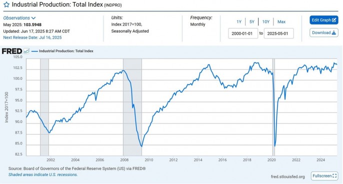 В начале 2000-х годов экономика и демография США были в несоизмеримо лучшей форме, чем в 2025 году, а госдолг был мал по текущим меркам. Объем промышленного производства в 2025 году больше всего на 1 процентный пункт от уровня 2007 года (не на один процент ежегодного прироста, а на один процент суммарно за все 18 лет). При этом в 2025 году ВВП прогнозируется 30,4 трлн долл., а в 2007 году был 14,5 трлн долл., то есть более чем удвоился в номинальном выражении.