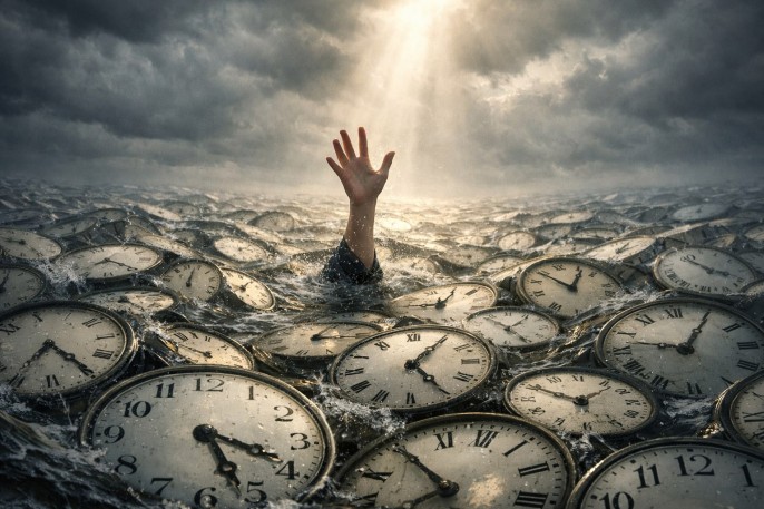 Как люди воспринимают время? Время для них — это хлыст. Будильник взрывается в темноте, как выстрел, и человек вскакивает, словно солдат по тревоге. Он глотает утреннюю пищу, натягивает на себя маску дня и выходит из норы — в поток, в марш, в строй. Его несут улицы, станции, коридоры, лифты. До обеда — изнурение, после обеда — обманчивое послабление, жирная пауза, как затишье перед новым штурмом. А за два-три часа до конца — лихорадочный мозговой штурм, судорожная имитация смысла, последняя попытка оправдать своё существование перед бездушным алтарём расписания.