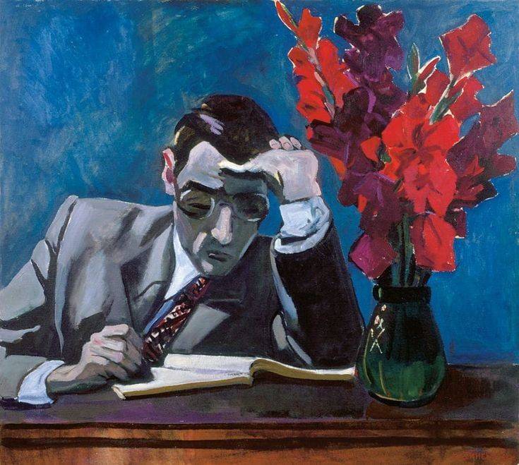 В 1960-х Дейнека не отстаёт от бытия, от современности. «Юный конструктор» (1966) – девушка на фоне чертёжного кульмана. Она, как говаривали герои романа «Понедельник начинается в субботу» занята не просто делом, но «счастьем человеческим». Наука – вот, что занимало тогдашние умы. Об учёных сочинялись романы и снимались кинофильмы. Культ тела уступил культу интеллекта. Возникла своеобразная мода на очкариков. Картина «Трудное решение» (1966) – научный работник погружён в думы. Тёмная палитра «возжигается» букетом гладиолусов, которые здесь на контрасте с фигурой мыслителя. Дивные-шестидесятые! Все грезили космосом, будущим, «яблонями на Марсе». То была нелёгкая работа, сопряжённая с легкокрылой романтикой. Дейнека до конца своих дней оставался в строю, фиксируя все процессы, явления, феномены. Живописуя время, он оставался в Вечности, и выставка в Третьяковке – тому подтвеждение.