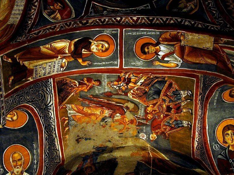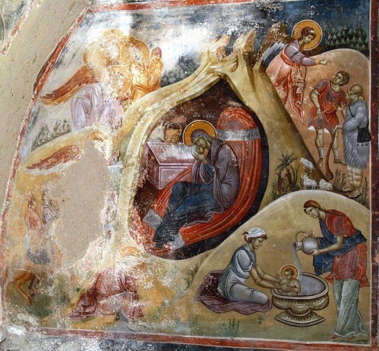 В Каппадокийской церкви, получившей турецкое именование «Каранлик килисе» («Тёмная» церковь, т.к. дневной свет в нее практически не проникает) среди росписей XI-XII вв. обращает на себя внимание очень интересное пространственное расположение композиций: на арке – пророки Исайя и Аввакум, рядом с ними их же осуществившееся пророчество – Рождество Спасителя-Мессии. Волхвы и ангелы с пастухами на другой стороне свода обращены к изображенной в люнете Богоматери с Младенцем, оттуда же, со свода, светит на Младенца звезда, за которой идут волхвы, – луч от нее идет через откос на поверхность люнеты, указывая прямо на Младенца.