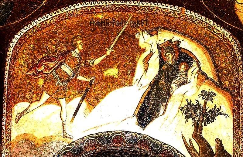 78. Ирод отдаёт воинам приказ избить всех младенцев в окрестностях Вифлеема. И вот они уже идут исполнять приказание.