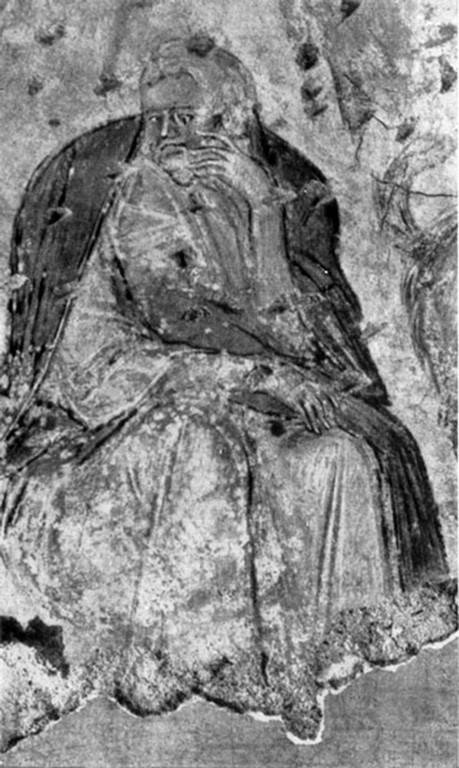 43. Фреска в Преображенской церкви Мирожского монастыря. Псков, роспись XII в. У средовека-волхва не фригийский колпак, а, скорее, русская шапка с меховой оторочкой. Возможно, на византийского художника такое впечатление произвел холодный климат Русского Севера, что он решил запечатлеть русский головной убор на голове одного из волхвов.
