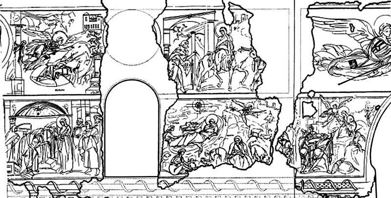 17. Схема размещения композиций в апсиде церкви Санта Мария ин Кастельсеприо. В верхнем регистре: