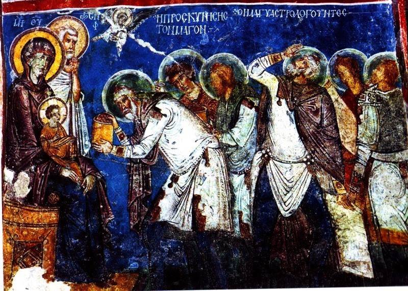 В древности ни у кого не возникало сомнения в том, что это были персидские маги-астрологи (кое-где они так и подписаны), вычислившие появление на свет Спасителя мира по движению планет. «Волхвы пришли из стран восточных в Иерусалим, как это предсказал Зерадах…» – говорится в апокрифическом Евангелии Младенчества (понятно, что речь идёт о Зороастре). Кроме того, римские христиане рассматривали волхвов как некое олицетворение древней языческой мудрости, и здесь важна мысль о преемстве знания, мудрости вообще – поклоняясь Воплощенному Логосу, олицетворяющему собою не только Новый Завет, но новый мир, новый свет (не случайно Рождество называют зимней Пасхой, которая, как известно, по времени примерно совпадает с днем весеннего равноденствия и персидским праздником Наврус – Новый Свет), волхвы как бы передают Ему эстафету мудрости; удаляясь восвояси, они уходят в небытие, зная, как Иоанн Предтеча, что Ему надлежит возрастать, а им – умаляться (Ин. 3:30).