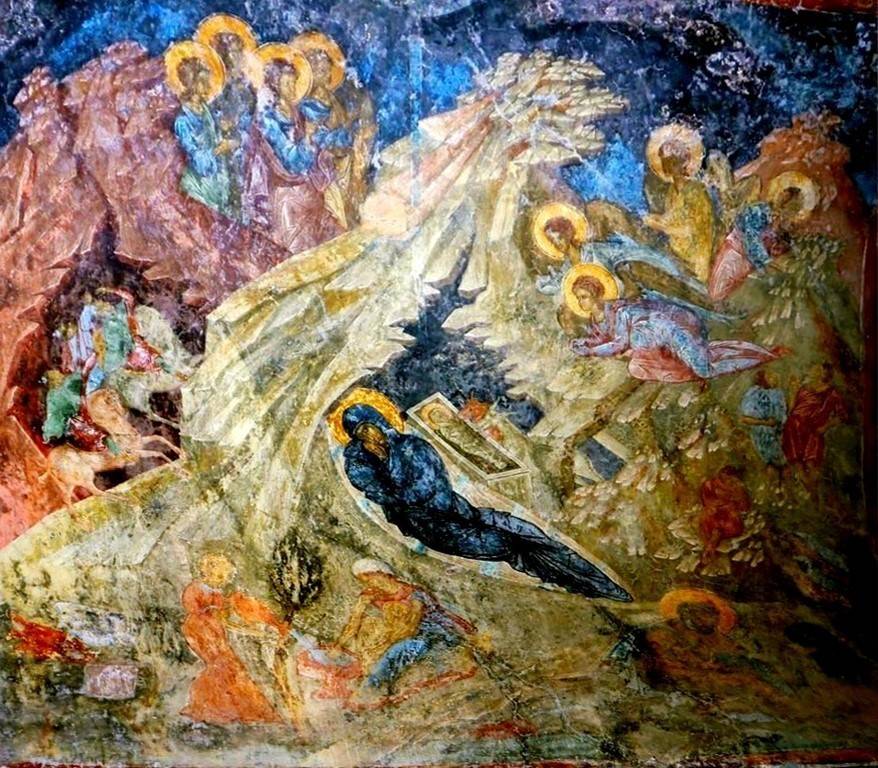 Богомладенец Иисус на иконах Рождества довольно часто выглядит очень беззащитным и одиноким: маленький, стянутый пеленами, как веревками или погребальными бинтами, на каменном жертвеннике, как будто уже приготовленный к закланию. Но такой пронзительной жалости – до слез, до спазмов в горле, как на закопченной и пыльной фреске в малоизвестном сербском селе Арилье, Богомладенец не вызывает, пожалуй, нигде.