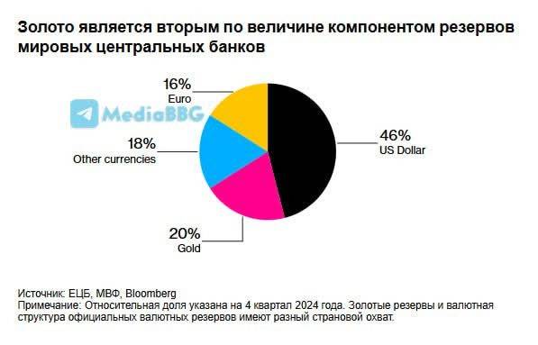 Это данные ЕЦБ на 2024 год. За год ситуация несколько изменилась. Доллар в резервах теперь 44%, т.е. на 2% меньше, евро на 2% меньше, а вот золота стало на 2% больше, и на 2% соответственно юаня. Многие считают, что Китай купил золота гораздо больше, чем об этом сообщает. Такова китайская традиция - молчать, чтобы не завидовали. Некоторые считают, что за цифровым юанем мы увидим юань, обеспеченный золотом. Вряд ли. Такой вариант в мире уже проходили, в частности, Российская Империя. Ничем хорошим это не закончилось. Просто золотые червонцы массово утекали за границу по цене металла. Однако раз страны БРИКС собираются ввести свою валюту для внутренних расчётов под названием «Юнит», то золото центробанкам БРИКС очень нужно. Т.к. 60% «Юнит» будет формироваться местными валютами, а 40% - золотом. Вопрос только в том, кто будет котировать золото. Если по нынешней лондонской бирже, то и «Юнит» станет валютой, производной от доллара, т.к. цена на золото в мире определяется в долларах.