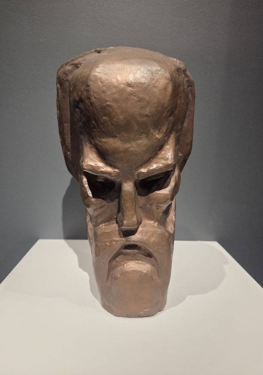 Один и центральных экспонатов - гипсовая модель памятника. Голова Хрущёва словно бы зажата меж светом и мглой. Деятель, наломавший дров чуть не во всех отраслях, тем не менее, стал лидером в космической гонке и поспособствовал расселению коммунальных квартир, полуподвалов, домов барачного типа. Любой советский лидер достоин, если не славословия, то хотя бы правды. «В этой работе будет и моё отношение к Хрущеву, как к дуалистической фигуре, стоящей на границе двух времен, как фигуре, содержавшей в себе реальные противоречия», - рассуждал Неизвестный. Мастер углядел эту сложность хрущёвской натуры, а в полемике Художника с Властью последнее слово осталось именно за Художником.