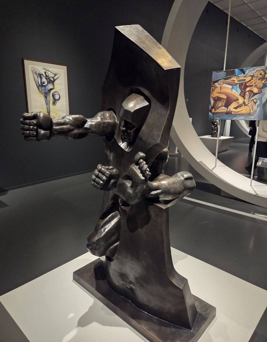 На выставке есть античный торс, одновременно восходящий к Венере Милосской и Афродите Книдской – единая богиня греко-римлян, сработанная из гранита – Неизвестный чувствовал гармонию древних гениев, но желал говорить на языке XX столетия. Нонконформизм частенько бывает подражательным или нарочито-вызывающим, а Неизвестный хотел быть образцовым гражданином – одно то, как геройски он прошёл сквозь пламя Великой Отечественной – лучшее тому подтверждение. Скульптор шёл в ногу с эпохами – одухотворён его «Космонавт», старающийся одолеть силу притяженья Земли. Персонаж протягивает руку в резком порыве, чтобы дотронуться до звёзд, рассыпанных словно жемчужины по черноте космического бархата. Покорение вселенной волновало всех – и физиков, и лириков, а космонавты сделались элитой, причём не только в СССР –все жители планеты воспринимали космолётчиков, как полубогов.