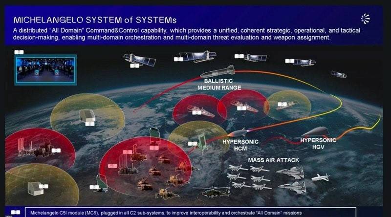 «Купол Микеланджело» — это не отдельная система, а целостная архитектура, объединяющая наземные, морские, воздушные и космические датчики нового поколения, платформы киберзащиты, системы управления и контроля, искусственный интеллект и скоординированные исполнительные органы, — пояснила компания Leonardo на своем веб-сайте.