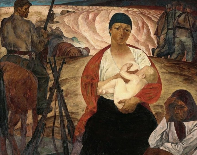 В Государственной Третьяковской Галерее сейчас проходит выставка произведений Михаила Савицкого (1922 – 2010), и его партизанская Мадонна – точка сборки всей экспозиции. Он родился в деревне Звенячи, недалеко от Орши. Его отец слыл крепким да мастеровитым – он и плотничал, и ковал, и знал слесарное ремесло. Маленький Миша постоянно крутился в отцовой мастерской, и, если бы не природная страсть к рисованию, он стал бы знатным ремесленником. Первые опыты – рисунки в колхозной стенгазете, где приходилось изображать и стахановцев, и лодырей. 1930-е годы – в городах и сёлах активно внедрялась грамотность и не просто умение складывать буквы, но всесторонняя образованность. Михаил «проглатывал» всё, что находил в избе-читальне, включая русскую классику.
